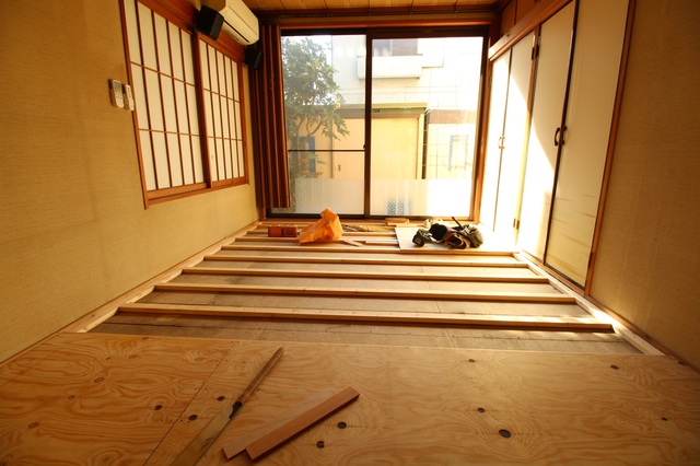 | 工法の特徴 | 既存の畳をすべて撤去し、下地から新しく作る方法。 | 既存の畳を撤去した後、今の床(畳下の板)の上に新しいフローリング材を重ねて張る方法。 |